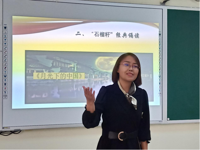 本次活动分为“石榴籽”小课堂和“石榴籽”经典诵读两个环节。“石榴籽”小讲堂环节中,石秀峰、庞凤琴、许俊芳先后领学了《中国共产党统一战线工作条例》相关内容。“石榴籽”经典诵读环节中,韩丽国朗诵《我在一颗石榴里看见了我的祖国》,庞凤琴朗诵《月光下的中国》,陈镜天朗诵《我骄傲,我是中国人》,饱含深情的诵读将对祖国和党的满腔热爱表达地淋漓尽致。