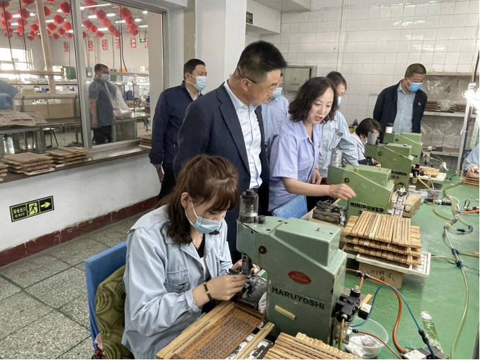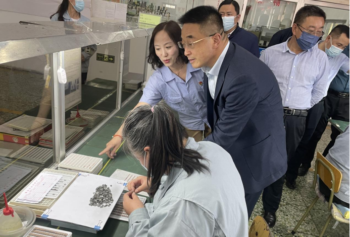 公司党总支书记刘金兰陪同刘春一行考察生产车间,详细介绍了企业生产经营、产品制造,以及党建引领业务发展的典型经验做法。