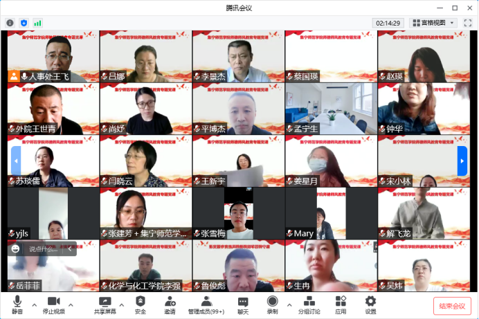 李景杰从“师德的内涵”“师德的问题”“师德的标准”“师德的建设”等四方面进行了阐释,详细分析了当前师德师风现状,然后就如何做一名有素质、有修养、有品位的好教师提出了要求:一是要有给学生以希望的教育观念;二是要有育人为本的教育情怀;三是要有服务社会的责任担当;四是要有遵章守纪的底线意识。同时李景杰要求我们要全面贯彻落实全国教育大会精神,以政治引领筑牢思想根基,以形象标准牵引教师行为,以陶冶情操锤炼个人素养,以法律法规强化师德底线,积极推进师德师风建设,把教师的一言一行,一举一动,都修养到不愧人师的地步。