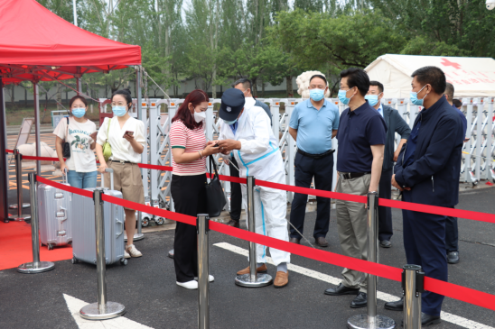 6月27日上午,刚刚下过雨的校园还弥漫着清新的青草味,就看到准备迎接同学们返校的老师们忙碌的身影。经过周密的工作安排和严格的入校检查,同学们陆续走进校园,校党委书记朱玉东,副校长李凤斌,党委委员、副校长李景杰等校领导和老师们早早在校门口等候,迎接同学们安全返校。