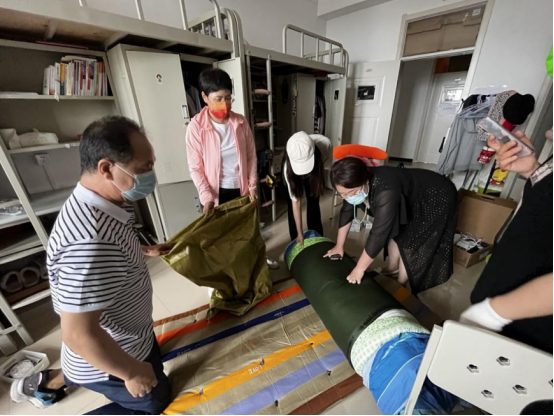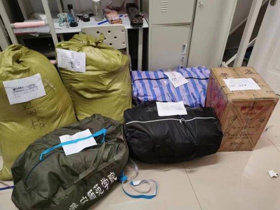 学院领导亲力亲为,带头参与毕业生的行李打包。因疫情原因无法返校学生的行李,班主任通过视频与同学们沟通、询问物品相关信息,认真标记物品数量。