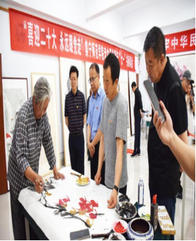 座谈会后“喜迎二十大,永远跟党走”beat365在线唯一官网老中青教师庆“七一”书画笔会在喜庆浓重的艺术氛围中展开。退休教师郝存祥为学校赠送个人书画作品集。