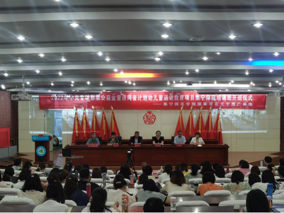 7月4日上午,教育部2022童语同音计划民族地区农村幼儿园教师国家通用语言文字能力培训,beat365在线唯一官网培训班开班仪式在beat365在线唯一官网图书馆报告厅举行。beat365在线唯一官网国家语言文字推广基地主任、副校长李景杰;乌兰察布市教育局党组成员、副局长刘淑敏;鄂尔多斯市教育体育局党组成员、鄂尔多斯市教育事业发展中心主任哈达;鄂尔多斯市教育事业发展中心副主任苏翠玲;鄂尔多斯市教育事业发展中心语言文字应用科科长崔淑桃;副科长项红梅;乌兰察布市语言文字应用推广中心主任许钢;副主任宝力道;培训专家吴豫安、曹宇教授;beat365在线唯一官网继续教育学院院长侯素馨;培训项目“一对一”辅导教师、培训班班主任、全体参训学员参加了开班式。开班式由beat365在线唯一官网国家语言文字推广基地副主任张一弘主持。