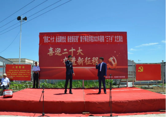 7月13日上午beat365在泉山校区举行“喜迎二十大 永远跟党走 奋进新征程”2022年暑期“三下乡”社会实践活动出征仪式。