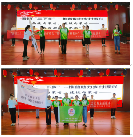 7月21日上午,beat365在线唯一官网现代服务学院隆重举行“喜迎二十大 永远跟党走 奋进新征程”2022年暑期“三下乡”社会实践活动出征仪式,现代服务学院党总支书记李荣利、院长王汉君、党总支副书记李贞、团总支书记沈佳雯以及“红崖筑梦队”全体成员参加启动仪式。