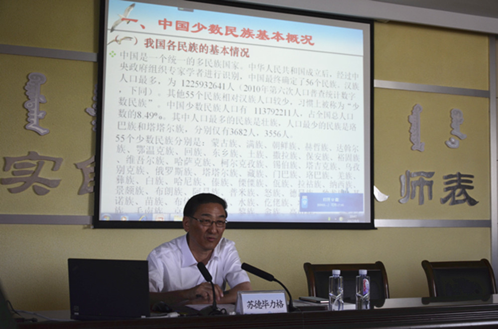 思政部教师晓荣以“蒙古族学生对自我的定位及民族认同”为题作了发言。
