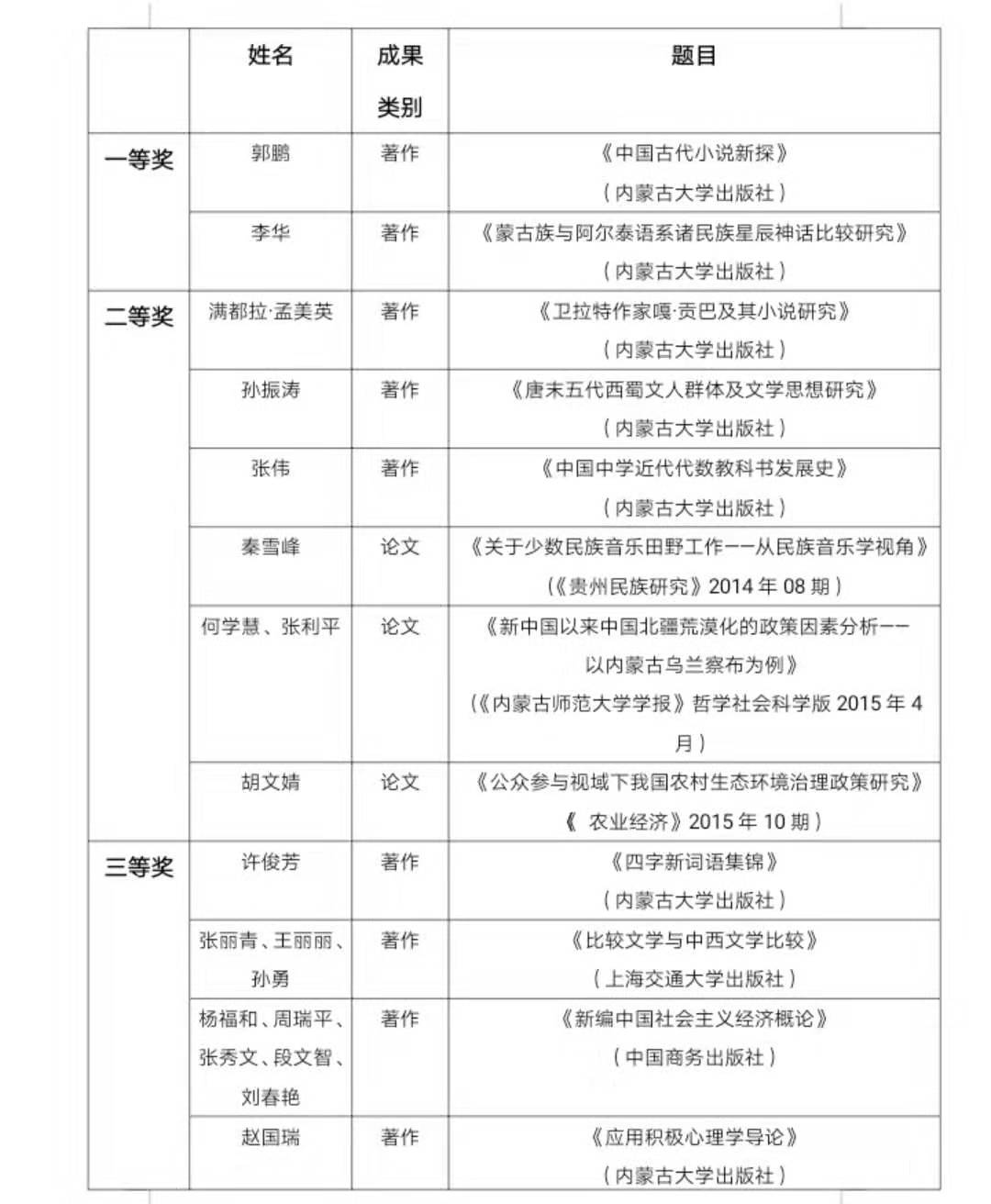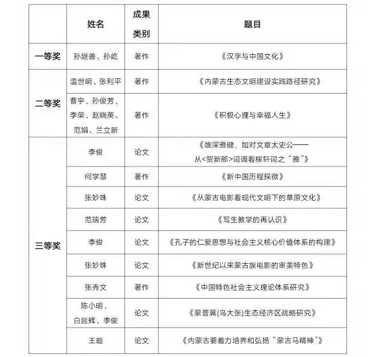 “乌兰察布市哲学社会科学优秀成果政府奖”名单