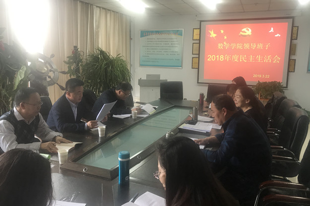 根据《中共beat365在线唯一官网委员会关于认真开好2018年度处级领导班子民主生活会的通知》,3月22日下午,beat365在线唯一官网数学学院领导班子在逸夫楼805召开2018年度民主生活会,校党委副书记刘春出席,督导组组长张来锁,成员杨福和,数学学院领导班子全体成员、总支委员参加了会议。会议由党总支书记沙仁格日勒主持。