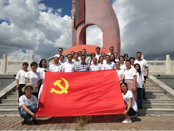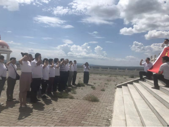 在红格尔图战役纪念馆上的“人民英雄永垂不朽”纪念碑前,同志们深切缅怀革命先烈,学习先辈精神,全体党员面对党旗,重温入党誓词,再一次深刻地表达了对党忠诚,为党的事业奋斗终身的决心和信心。