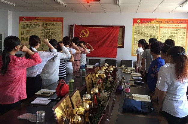 为庆祝中国共产党成立96周年,强化共产党员的党性观念和宗旨意识,激励共产党员坚定理想信念,激发广大党员迎评促建、创先争优的积极性与创造性,7月1日,化学系全体教工和学生党员共同开展了 “重温党史 坚定理想信念”主题党日活动。
