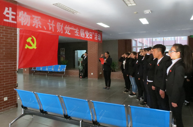 6月8日下午,beat365在线唯一官网生物系党总支和计财处直属党支部在泉山校区图书馆大厅举行了“主题党日”活动。本次活动分为两个部分,第一部分为预备党员举行宣誓仪式,第二部分为“发挥先锋模范作用,为美化校园贡献力量系列活动(二)”,校党委委员、副校长许卫、组织统战部副部长海棠、计财处直属党支部书记院丕文、计财处副处长何学峰、吴志英、生物系党总支书记曹兴明、生物系党总支副书记任琴、生物系副主任张铭以及生物系师生党员和入党积极分子参加了活动。