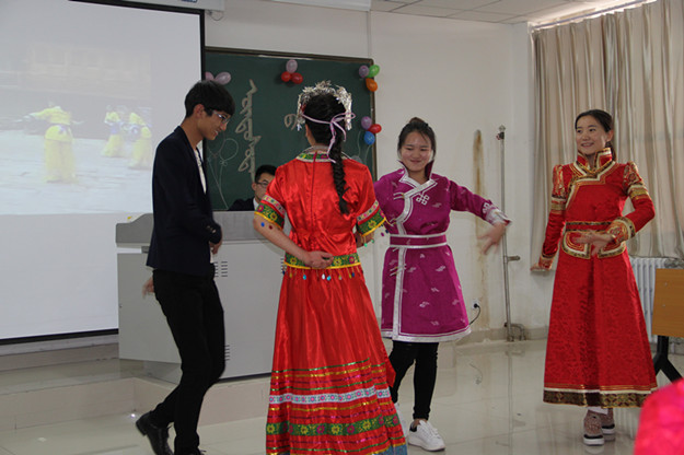 蒙古族迎宾礼仪欣赏、各民族民俗风情展示、民族学生代表与师生座谈分享会。汉族、蒙古族、鄂温克族、满族、回族、土家族、达斡尔族学生代表穿着美丽的民族服装,介绍本民族历史文化、服饰文化、饮食文化、民族节日等方面与师生们分享。