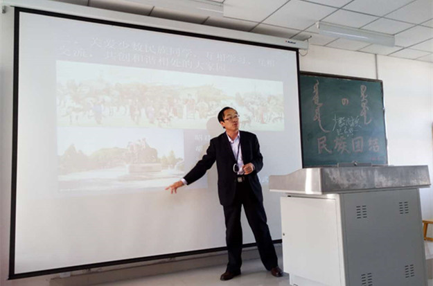 欧军教授以“各民族文化交往、交流、交融是促进民族团结进步的精神动力”为主题,从增强各民族文化认同,尊重少数民族风俗习惯,树立和坚持正确的国家观、民族观;关爱少数民族同学,互相学习、互相交流、共创和谐相处的大家园;树立“三个不离开”观念,积极践行社会主义核心价值观等三方面讲述民族团结的重要性及重要意义。