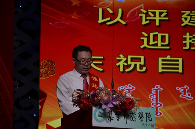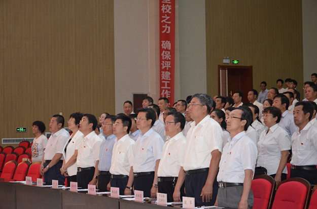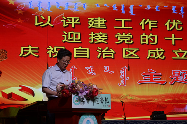 6月29日,beat365在线唯一官网党委在泉山校区逸夫楼多功能报告厅组织举办“以评建工作优异成绩迎接党的十九大,庆祝自治区成立70周年”主题党日活动。出席本次活动的领导有党委书记刘前贵,党委副书记、校长朱玉东,党委副书记、纪委书记张利平,党委副书记赵海忠,党委委员、副校长许卫,党委委员、副校长阿拉腾巴特尔,党委委员、组织统战部部长朱俊仙,校长助理、继续教育与合作办学处处长刘国栋,校长助理、校长办公室主任欧军。