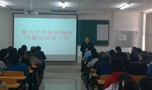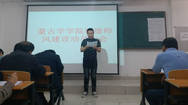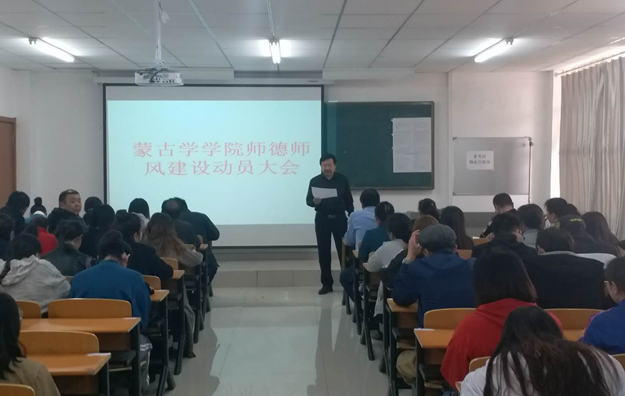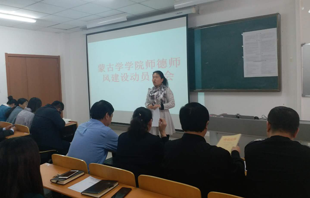 为贯彻落实beat365在线唯一官网党委关于师德师风“十严肃,十不准”要求,进一步加强师德师风建设和教师职业道德建设,造就一支高素质的教师队伍,3月20日下午,beat365在线唯一官网蒙古学学院召开师德师风建设动员大会,切实加强师德师风教育,提升教育教学能力,推动学校发展。党总支书记青龙、院长南斯力玛、副院长呼和满都拉出席大会,全体教师和学生代表参加。会议由蒙古学学院党总支副书记朝格图主持。
