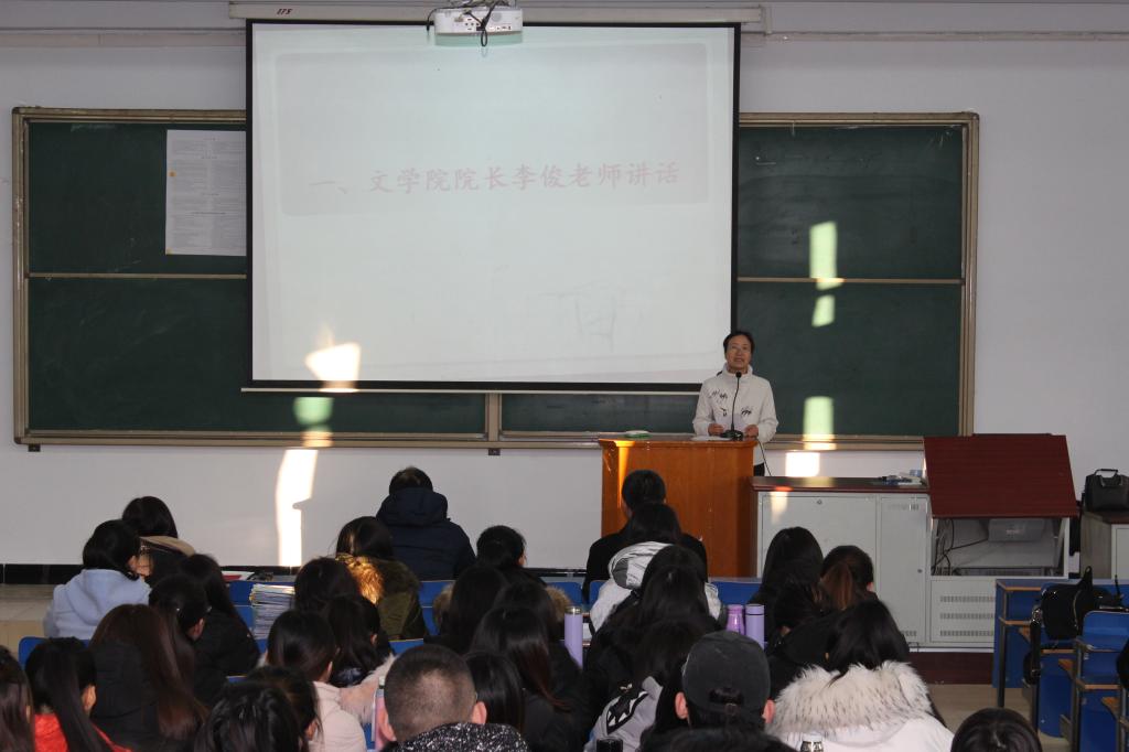 15日,文学院在教学主楼召开2018届预毕业生第一阶段实习总结大会。文学院党总支书记张来锁、院长李俊、副院长郭鹏、各指导教师以及2018届全体预毕业生参加了本次大会。会议由具体负责教育实习的外国文学教研室主任庞凤琴主持。