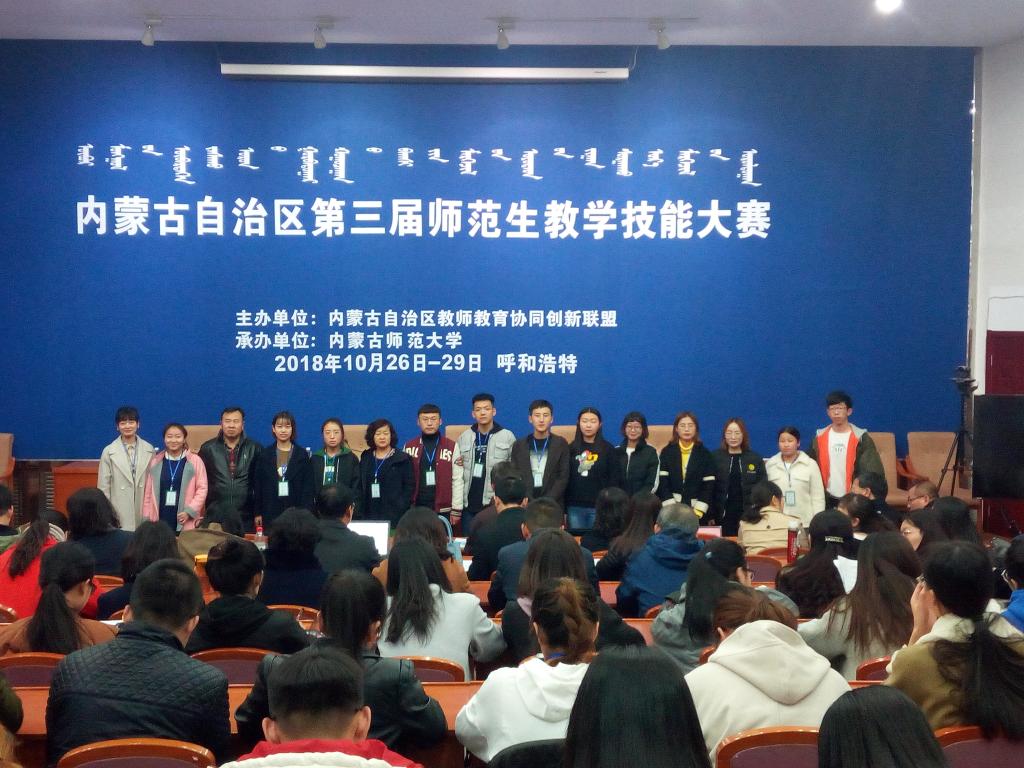10月26日-28日,由内蒙古自治区教师教育协同创新联盟主办,内蒙古师范大学承办的内蒙古自治区第三届师范生教学技能大赛在内蒙古师范大学举行。全区来自内蒙古师范大学、内蒙古民族大学、包头师范学院、赤峰学院、呼和浩特民族学院、beat365在线唯一官网、河套学院7所高校的112名学生参加了比赛。