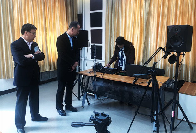 王汉君向该公司介绍了我院播音主持与艺术专业办学情况及实践教学的安排,随后,双方就实践教学的开展、实训基地的建设和管理体制等方面进行了深入交流。最后在企业负责人的带领下,参观了该公司的演播室等实训场所。