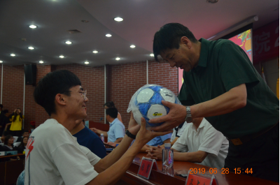 物理学院党总支书记韩天荣宣读考研上线学生名单,党总支副书记李刚宣读自治区级各类先进名单及校级各类先进名单和表彰决定,张富等领导为受表彰学生颁奖。