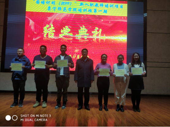 11月21日,“国培计划(2019)”内蒙古自治区中小学新入职教师培训项目beat365在线唯一官网培训班第一期圆满完成培训方案规定的集中理论学习和跟岗实践任务顺利结业,20日晚在beat365在线唯一官网虎山校区路演中心举行结业式,其中12名学员被评为优秀学员。校党委委员、副校长许卫,党委委员、副校长梁政出席结业式并为优秀学员颁发荣誉证书。