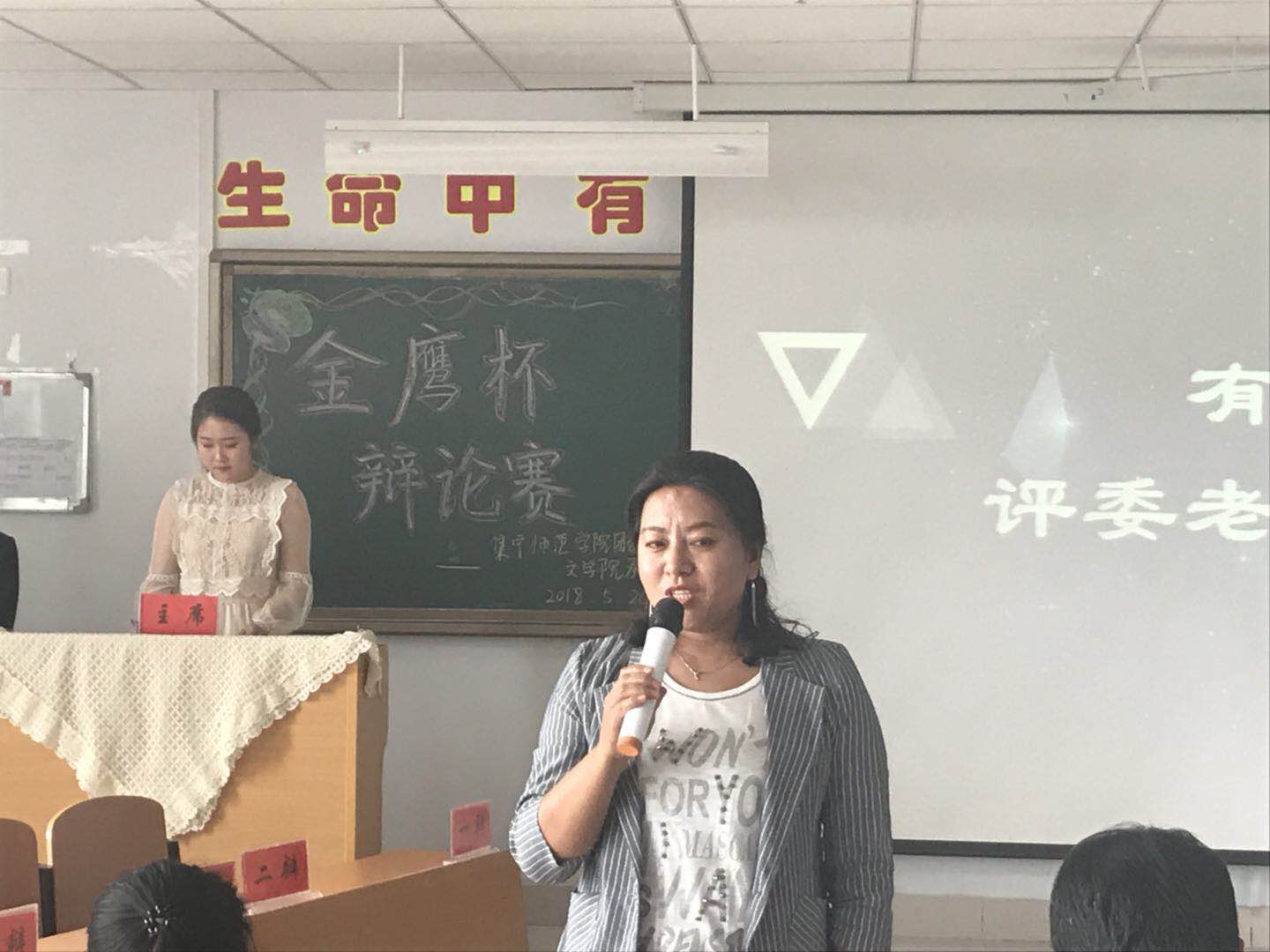 两组选手比赛后,周丽青老师作了中场点评,她对选手们的充分准备以及口才表示肯定,但同时也指出选手在临场应变上的不足。