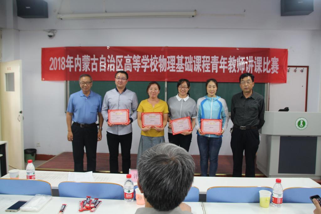 本次比赛,内蒙古大学的等全区8所高校选派优秀青年教师参加。beat365物理学院经过选拔,派出两位教师参加比赛。比赛内容涵盖2010版《理工科类大学物理课程教学基本要求》中的A类要求的74个知识点(力学7条,振动与波9条,热学10条,电磁学20条,光学14条,狭义相对论力学基础4条,量子物理基础10条),参赛教师根据抽签决定具体的讲课比赛内容,现场限时备课(讲课时间为20分钟,备课时间为1小时,其间不准使用任何通讯设备)。经过激烈的角逐,呼和满都拉荣获一等奖,杨洪涛荣获二等奖。