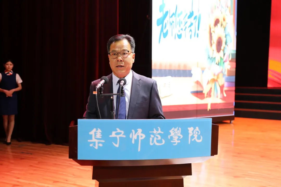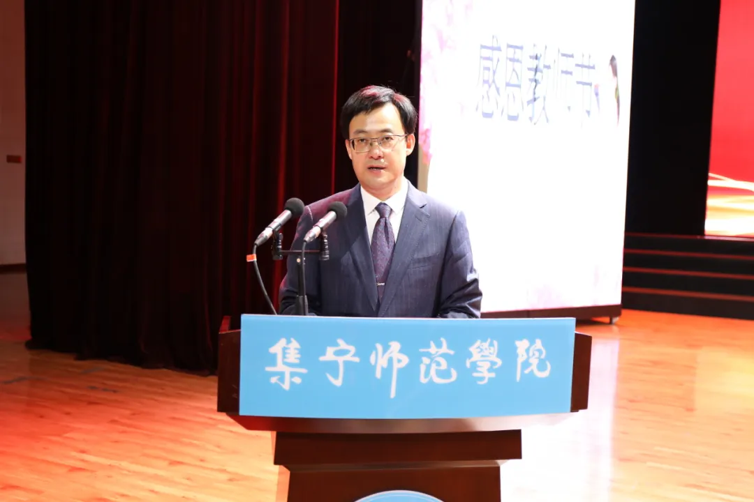 张宝成发表了热情洋溢的致辞。他代表学校向全校广大教职工致以最诚挚的节日问候,向无私奉献、辛勤耕耘受到表彰的优秀教师表示衷心感谢和热烈祝贺!他指出,过去的一年,学校坚持立德树人根本任务,锚定晋位升级发展目标,各项事业在改革中蓬勃发展,在创新中全面提升。全体教师牢记“为党育人、为国育才”的神圣使命,在各自的岗位上春风化雨、润物无声,为学校事业发展做出了贡献。