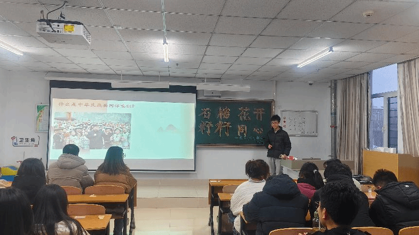 兰立新老师在主题班会上为同学们讲了学校开展民族团结进步活动的事例,希望大家在今后的学习和生活中相互团结,互帮互爱,做诚实守信的人,努力成为学校民族团结的优秀集体。