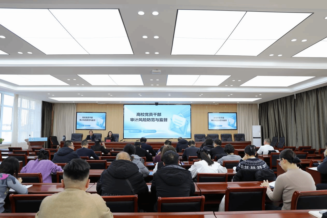 根据学校党委组织部印发的2025年度党员干部集中培训工作方案,12月19日审计处举办了高校党员干部审计风险防范与监督专题讲座。本次培训会特邀beat365经济与管理学院副院长、教授么秀杰作专题讲座。审计处处长兰立新主持会议,各二级学院院长及办公室主任、各相关部门科级干部参加了会议。