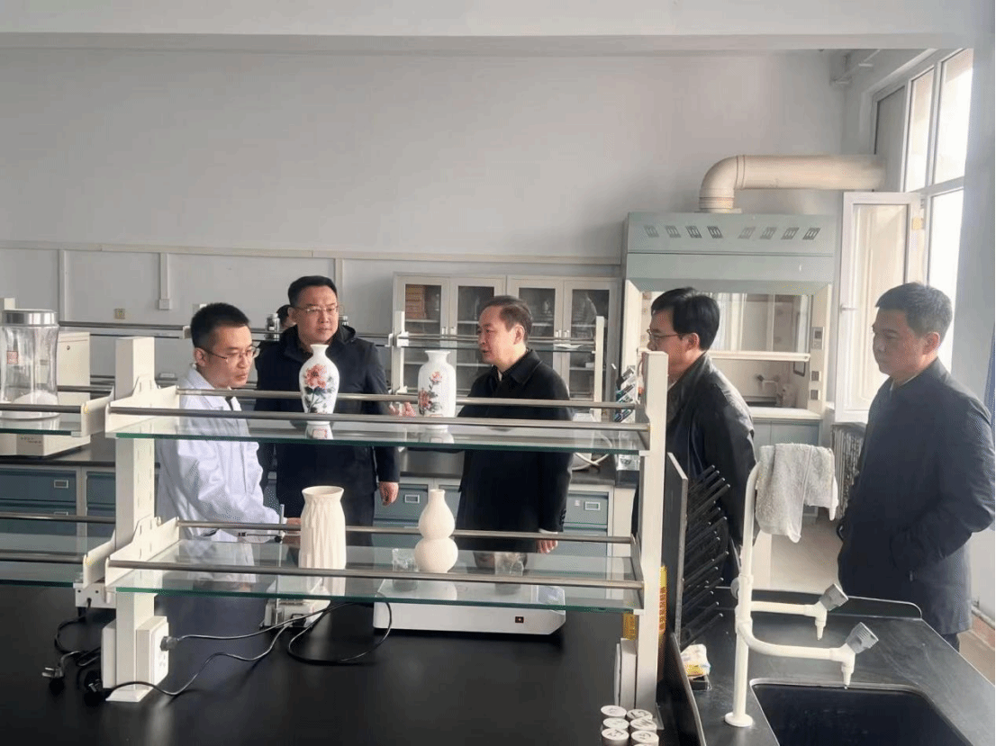内蒙古自治区教育厅党组书记、厅长杜汇良考察石墨烯研究院合成制备实验室听取孟祥锋博士讲解高端礼品陶瓷工艺研究