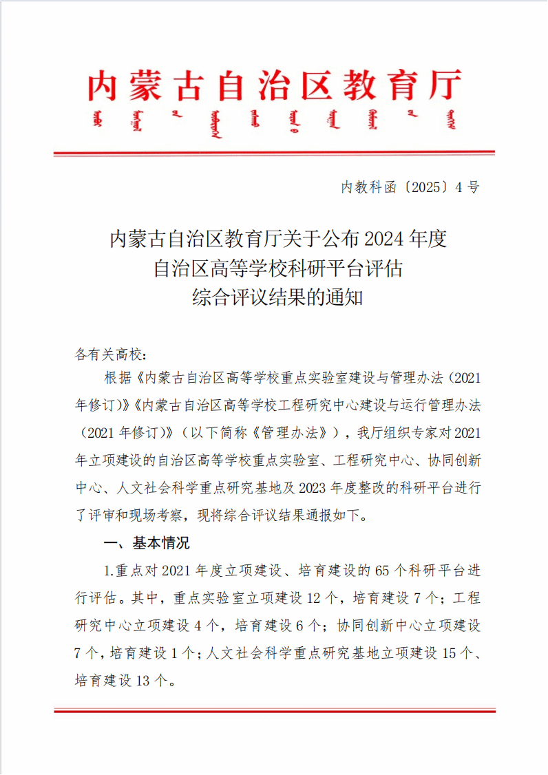 2016年,beat365在线唯一官网石墨烯研究院内蒙古自治区矿土土质改性及综合利用重点实验室获批建设。2024年8月,该实验室完成考核辩,2025年2月通过自治区教育厅验收。这标志着重点实验室建设取得阶段性成果。