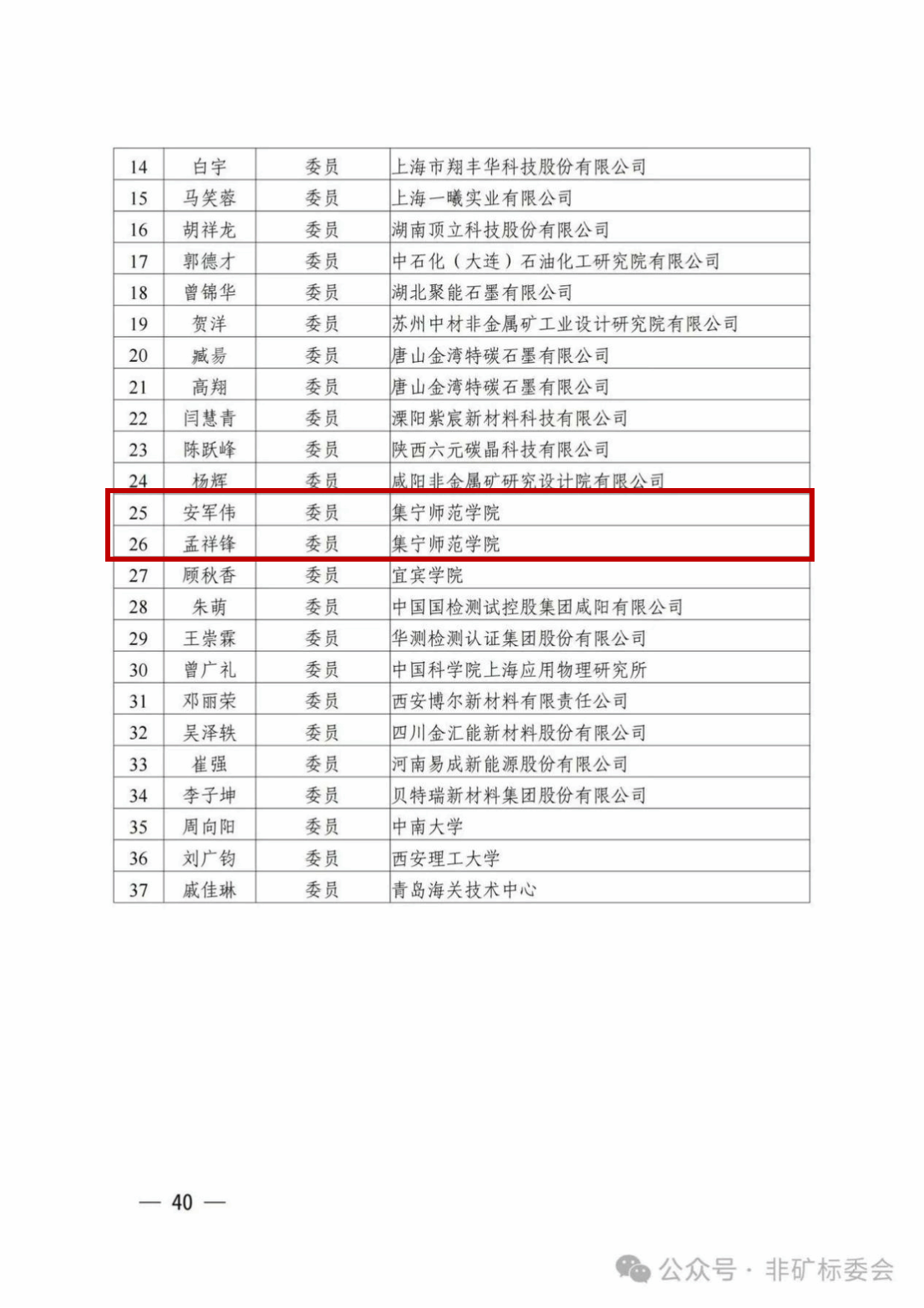 近日,beat365在线唯一官网石墨烯研究院团队的孟祥锋、安军伟、王志平三位专家成功当选全国非金属矿产品及制品标准化技术委员会第二届鳞片石墨分技术委员会(SAC/TC406/SC2)和第二届微晶石墨分技术委员会(SAC/TC406/SC4)委员。全国非金属矿产品及制品标准化技术委员会是我国非金属矿领域重要的专业技术组织,负责推动行业标准化建设与产业升级。