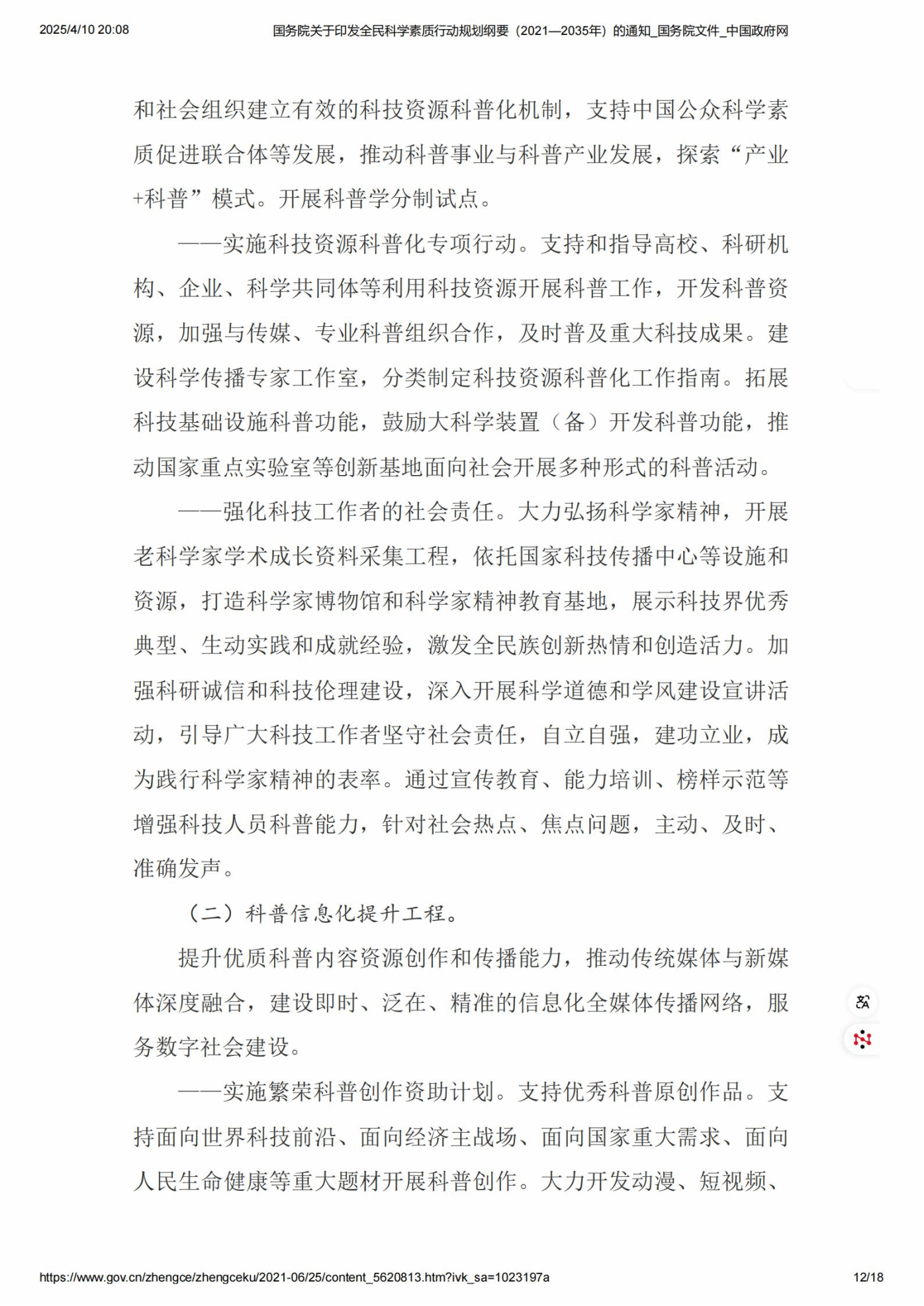 科普强化与全民科学素质提升:国务院关于印发全民科学素质行动 规划纲要(2021—2035年),筑基国家创新与现代化