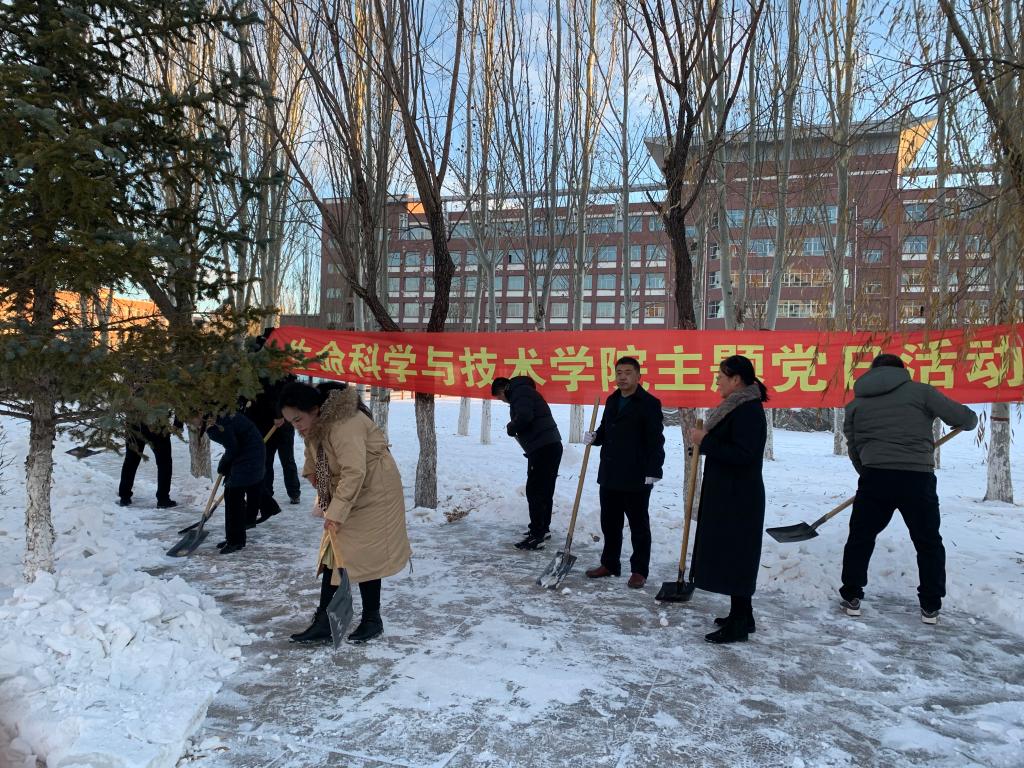 劳动中,天气虽然寒冷,但教师党员的热情和干劲十足,经过两个小时清扫,逸夫楼通向实验教学楼的步行路面的积雪被清扫干净,保障了师生上课通行的安全。本次“主题党日”活动,充分展现了教师党员的先锋模范作用和党支部的战斗堡垒作用,从做好身边小事来强化全院教师党员服务师生的意识和能力,为文明校园的建设奉献微薄之力。