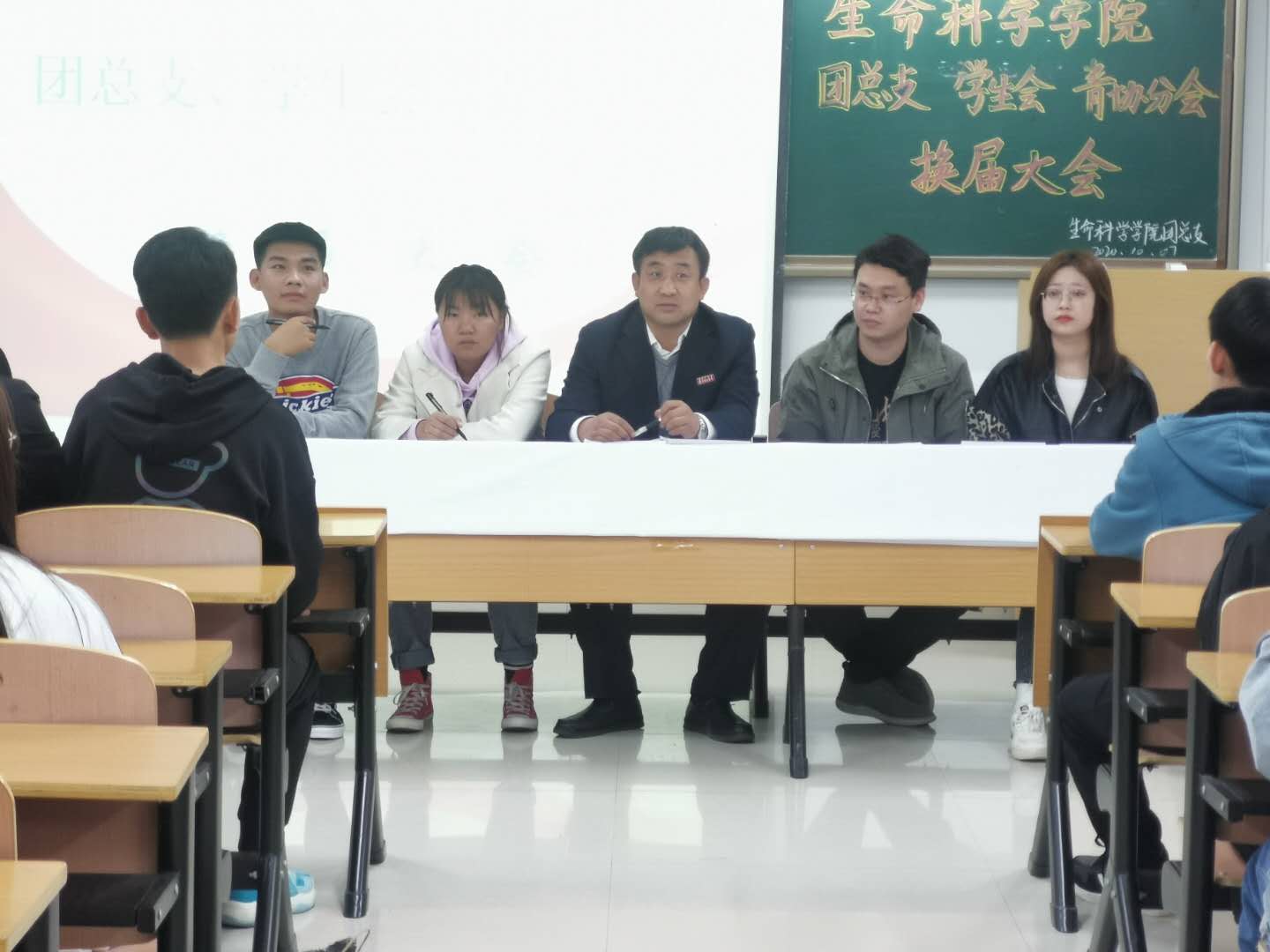 为了保持我院团总支、学生会、青协分会工作的传承性和连续性,更有效地开展学生工作,生命科学学院于2020年10月7日19时在逸夫楼201室召开了生命科学学院第九届团总支、学生会、青协分会换届大会,参加本次会议的有生命科学学院党总支副书记孙登高、团总支书记陈宇浩、学工办负责人张荟及团总支、学生会、青协分会新老成员。