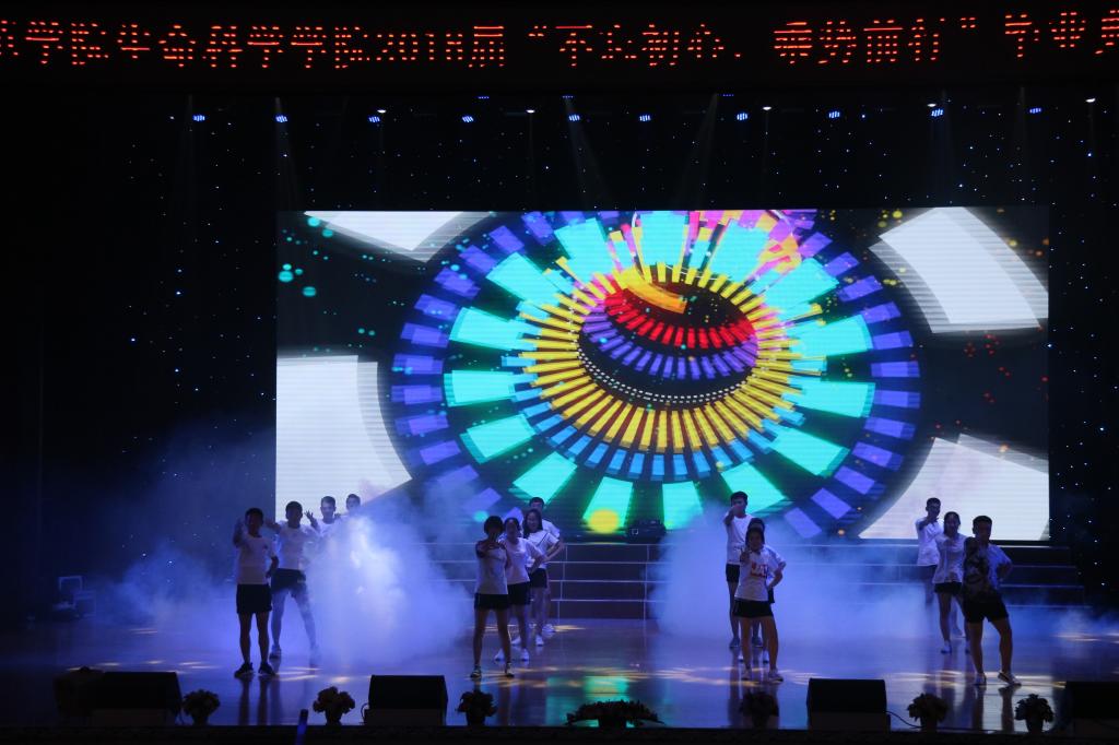 晚会节目精彩纷呈,有热情激昂的樂民谣乐队演奏,震撼奔放的马头琴表演,激情澎湃的青春舞蹈,幽默诙谐的小品、相声,感人肺腑的手语操、诗朗诵等节目。最后伴随着情景剧的结束,生命科学学院2018届“不忘初心、乘势前行”毕业典礼暨欢送会缓缓落下帷幕。
