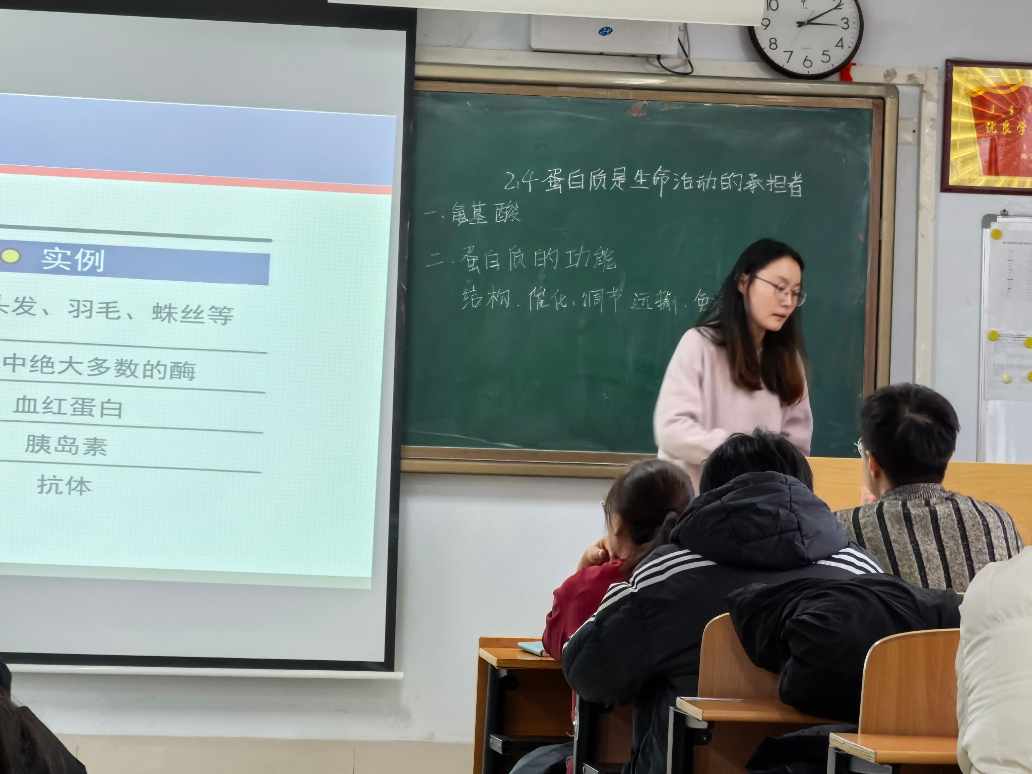 12月22日下午,生命科学与技术学院在逸夫楼201教室举办教学实践观摩研讨活动,聚焦高中生物课程《蛋白质是生命活动的主要承担者》,旨在推动“高校—中学”协同育人,强化将专业知识转化为教学实践的能力。