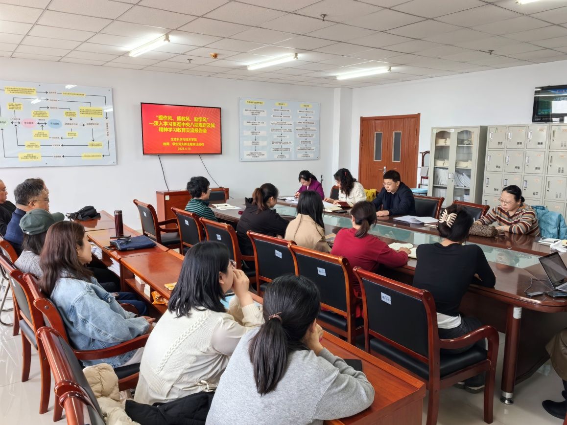 4月10日下午,生命科学与技术学院教师、学生党支部联合开展“提作风、抓教风、励学风”---深入贯彻中央八项规定精神学习教育交流报告会暨主题党日活动,会议由教师党支部书记柴文娟主持。按照乌兰察布市和校党委关于开展深入贯彻中央八项规定精神学习教育的实施精神要求,结合工作实际,进行开门教育,把学习教育与群众活动融合在一起,学院教师、学生党支部党员及部分非党员教师代表参加了这次交流报告会。