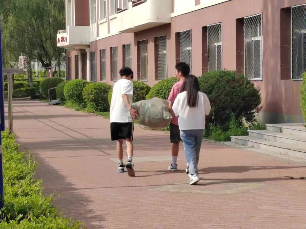 教师与学生干部提前在宿舍楼前集合,组成志愿服务队,化身“搬运工”,为毕业学子们提供一站式服务。从整理、搬运到运输,从宿舍门到学校南门、西门,到处都有他们忙碌的身影。一双双热情伸出的手、一张张带着笑意的面庞、一个个扛起行李陪着毕业生笑谈远去的身影,让这个伤感的毕业季充满了阳光般的温暖,为毕业生们增添了一份温馨而美好的回忆。