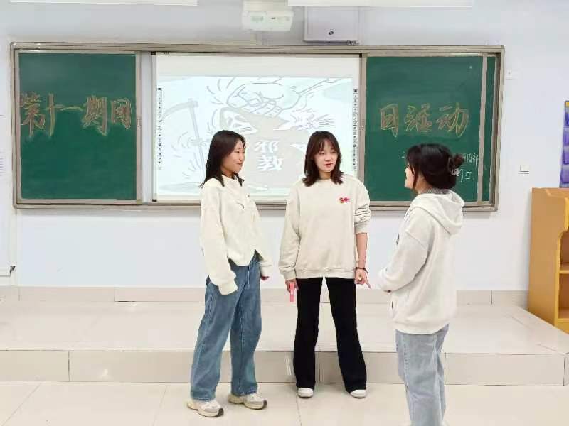 活动第四项,话剧《预防邪教》。通过几位同学生动形象的话剧表演,每一位同学都深刻的感受到了邪教的危害。让我们明白了美好的幸福生活是靠自己打拼出来的,并不是靠所谓的“求神拜佛”。