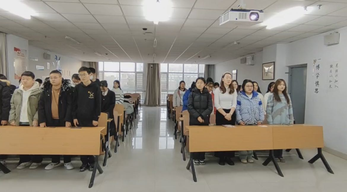 全体同学齐唱中华人民共和国国歌。全体同学怀着无比自豪的心情肃然而立,以激昂嘹亮声音唱响国歌,每个人都表达了与祖国共奋进的决心和信心。