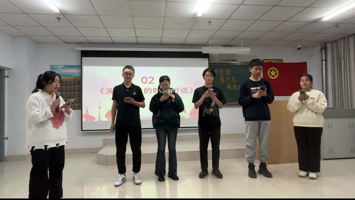 唐文硕、陈旭等人带来小品《涴溪江边的时空对话》。通过几位同学生动形象的小品表演,每一位同学都深刻认识到自己“天将降大任于斯人”的时代使命,我们更应该踔厉奋发、勇毅前行,努力实现中华民族伟大复兴的中国梦。