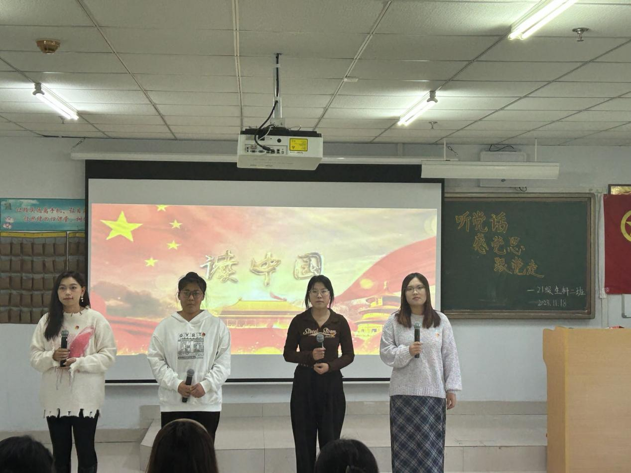 2021级生物科学二班的同学们带来了精彩的朗诵《读中国》,在座同学们无不为我们欣欣向荣的国家感到骄傲和自豪,纷纷表示要做坚定不移听党话、跟党走,敢立志、有理想、敢担当、能吃苦、肯奋斗的新时代好青年。