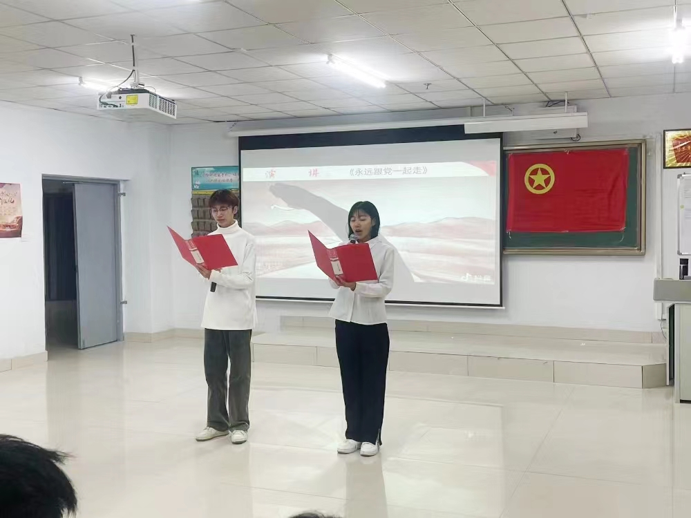 “永远跟党一起走”主题演讲。通过刘诣翀和李英頔同学慷慨激昂的演讲,同学们深刻地认识到自己的成长和发展与党和国家密不可分,领悟到新时代青年是推动国家强盛和民族复兴的先锋力量,体会到党和国家对吾辈青年的殷切期望,同学们表示必将听党话、跟党走,担当时代赋予青年的重任,为祖国的发展与民族的复兴贡献自己的力量。