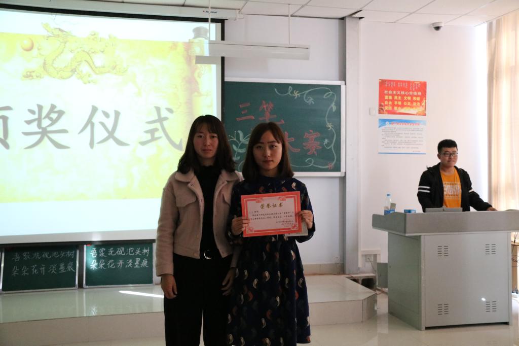 为了丰富同学们的课余生活,营造良好的校园文化氛围,促进学生全面发展。生物系团总支于2017年10月26日13:00在逸夫楼109教室举办了第六届“墨缘杯”三笔大赛。生物系学工办主任张军儒老师、生物系团总支副书记张晓慧、生物系青协大队队长兼学生会副主席蒙彦宇、生物系学生会主席王丽平、生物系学生会副主席王晓楠担任本次比赛的评委。