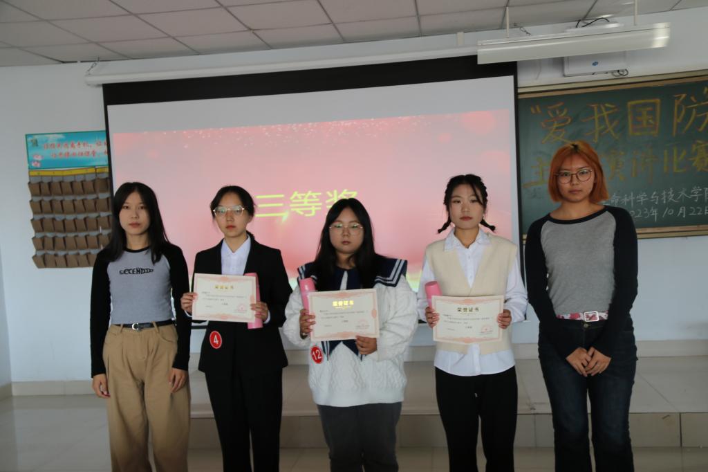 本次比赛各位选手表现出色,演讲风格独特,紧紧围绕“爱我国防”这一主题,通过讲述革命故事、介绍现代国防事业、观看国防视频,抒发强烈的爱国情怀;通过畅想民族复兴伟业,展望国家发展愿景,激励鼓舞了现场观众。精彩的演讲展示出我院学生对“中国梦,强军梦”的深刻理解,全面反映出我院学子蓬勃向上的精神风貌。