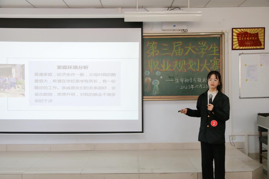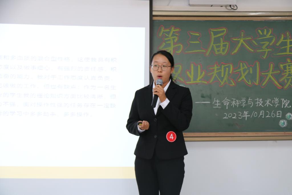 筑梦青春,规划未来。为增强大学生职业生涯规划意识,培养职业生涯规划能力,进一步提高大学生求职实践能力,促进学院学生高质量充分就业,生命科学与技术学院于10月28日14时在逸夫楼201室举办了第三届大学生职业规划大赛。我院教师党支部书记于博老师、指导教师柴文娟老师、程超老师担任本次大赛的评委。