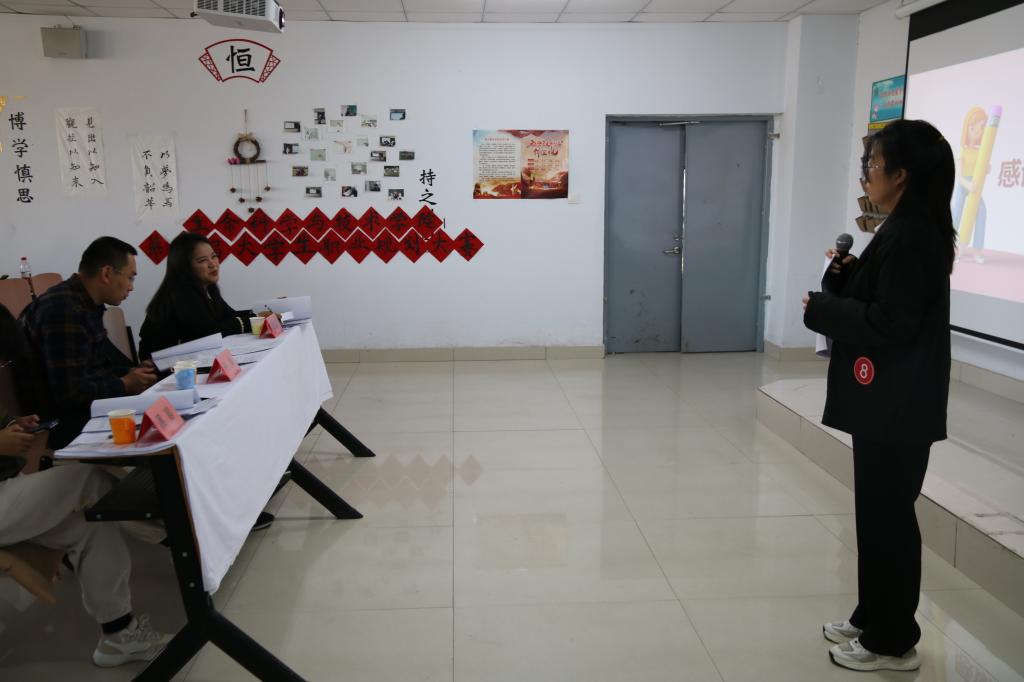比赛分为成长赛道和就业赛道两个赛道,9名复赛选手全部选择了成长赛道参加比赛。参赛选手首先进行职业规划PPT设计展示,每位选手热情激昂、条理清晰地讲解了自己的职业规划,展示出当代大学生锐意进取的良好精神风貌。接下来评委老师根据选手们的综合表现进行随机提问,选手们机智、敏捷地作出回答,表现出对自己职业生涯规划的自信。