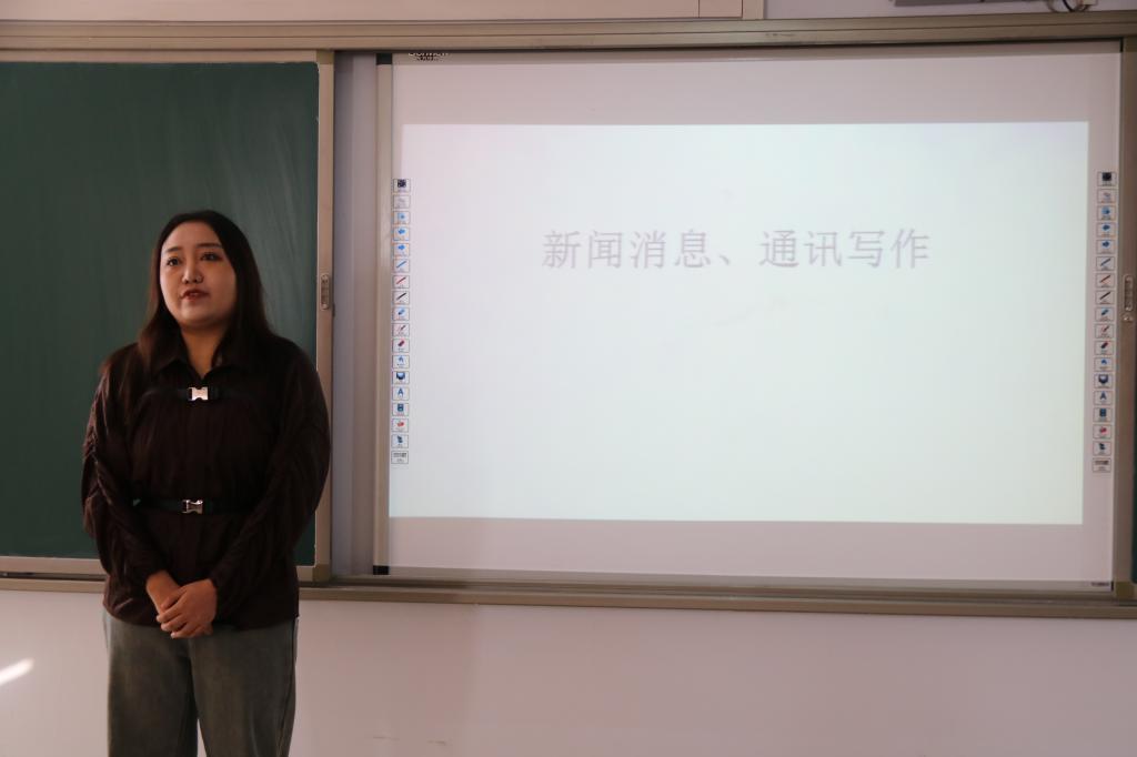 本次讲座邀请了集宁区融媒体中心副主编诺琪,她从稿件写作出发,主要讲解了通讯和消息写作的侧重点,同时根据各类稿件不同的性质特点提出了不同的写作要求。她还分析了多篇不同写作手法的案例,让同学们进行创作和思路总结。在照片拍摄方面,她鼓励同学们大胆拍摄,并以她的拍摄作品为例指出拍摄时应关注的细节和角度。