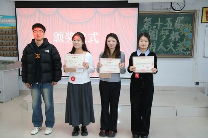为锻炼学生综合能力,丰富校园文化生活,生命科学与技术学院于12月7日在逸夫楼201室成功举办第十五届“圆梦杯”主持人比赛。我院学工办老师刘泰、团总支副书记卜文华、学生会主席团成员马雨辰担任本次比赛评委。